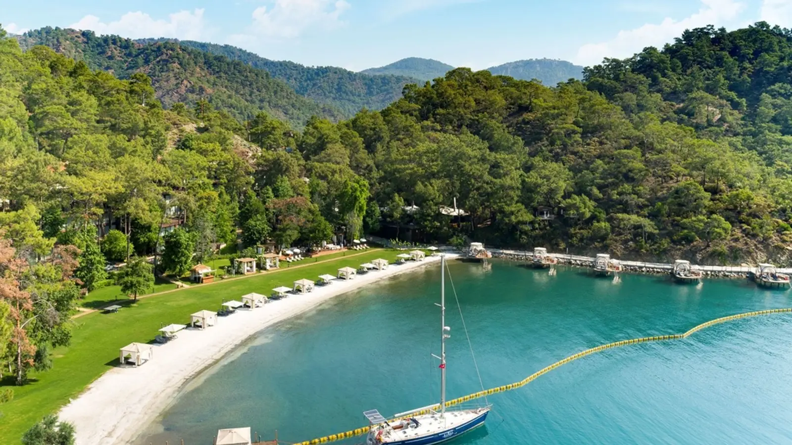 With its stunning location at the heart of the Göcek nature reserve, Rixos Premium Göcek offers a luxurious retreat overlooking the shimmering Aegean Sea, nestled between two marinas. Here you can spend a peaceful holiday under the pine trees, in a serene garden and on the secluded beach. Secret Beach can be reached in 5 minutes with a special speed motor from the facility.